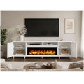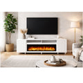 Efect de flacara Comoda Altea alb 190x75X30, cu semineu electric Aflamo Regal 106, sunet incorporat si aplicatie mobila,flacara 3D si teme de culoare cu focar electric AFLAMO