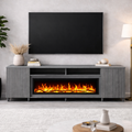 Efect de flacara Comoda Altea ash grey 190x75X30, cu semineu electric Aflamo Regal 106, sunet incorporat si aplicatie mobila,flacara 3D si teme de culoare cu focar electric AFLAMO
