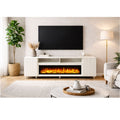 Efect de flacara Comoda Altea vanilie 190x75X30, cu semineu electric Aflamo Regal 106, sunet incorporat si aplicatie mobila,flacara 3D si teme de culoare cu focar electric AFLAMO
