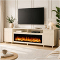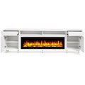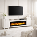 Efect de flacara Comoda Venetia alb 218x75X30, cu semineu electric Aflamo Regal 126, sunet incorporat si aplicatie mobila,flacara 3D si teme de culoare cu focar electric AFLAMO